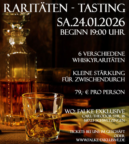 Tauchen Sie ein in die faszinierende Welt seltener Whiskys! Am 24. Januar 20226 erwartet Sie in unserem Ladengeschäft ein exklusiver Abend, der ganz im Zeichen edler Tropfen steht.