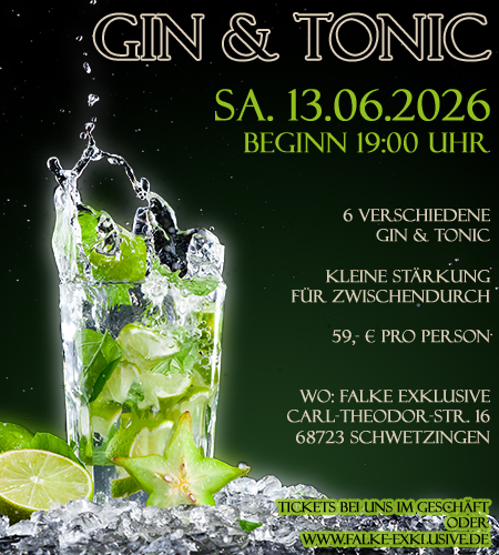 Erleben Sie die perfekte Kombination aus Gin und Tonic bei unserem exklusiven Tasting am 18. April 2026! Entdecken Sie 6 einzigartige Gin-Sorten, die wir mit sorgfältig ausgewählten Tonics kombinieren, um ein unvergleichliches Geschmackserlebnis zu schaffen.